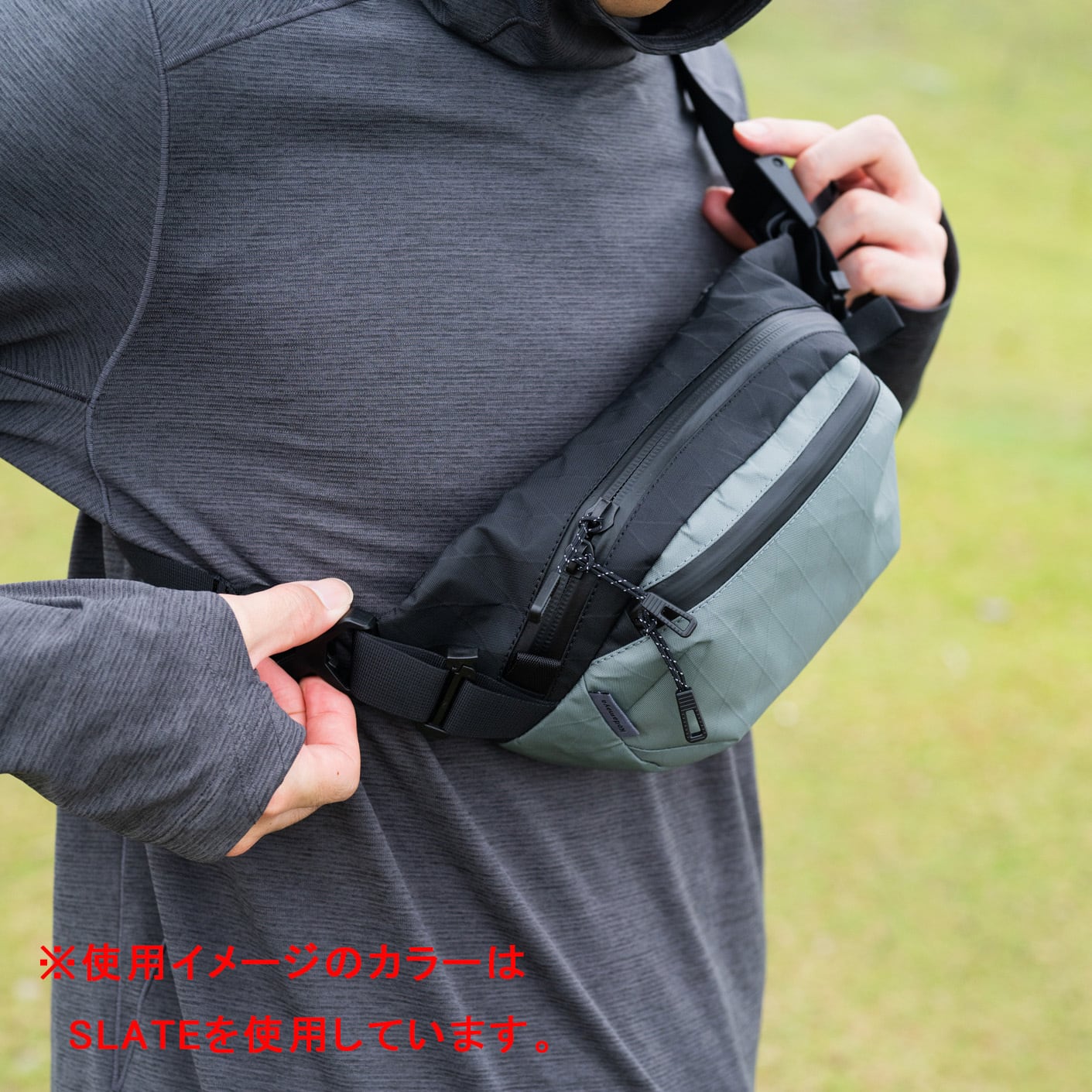 Merge Pack は身につけたときのストレスを抑え、快適に使えるように設計されたウエストポーチです。